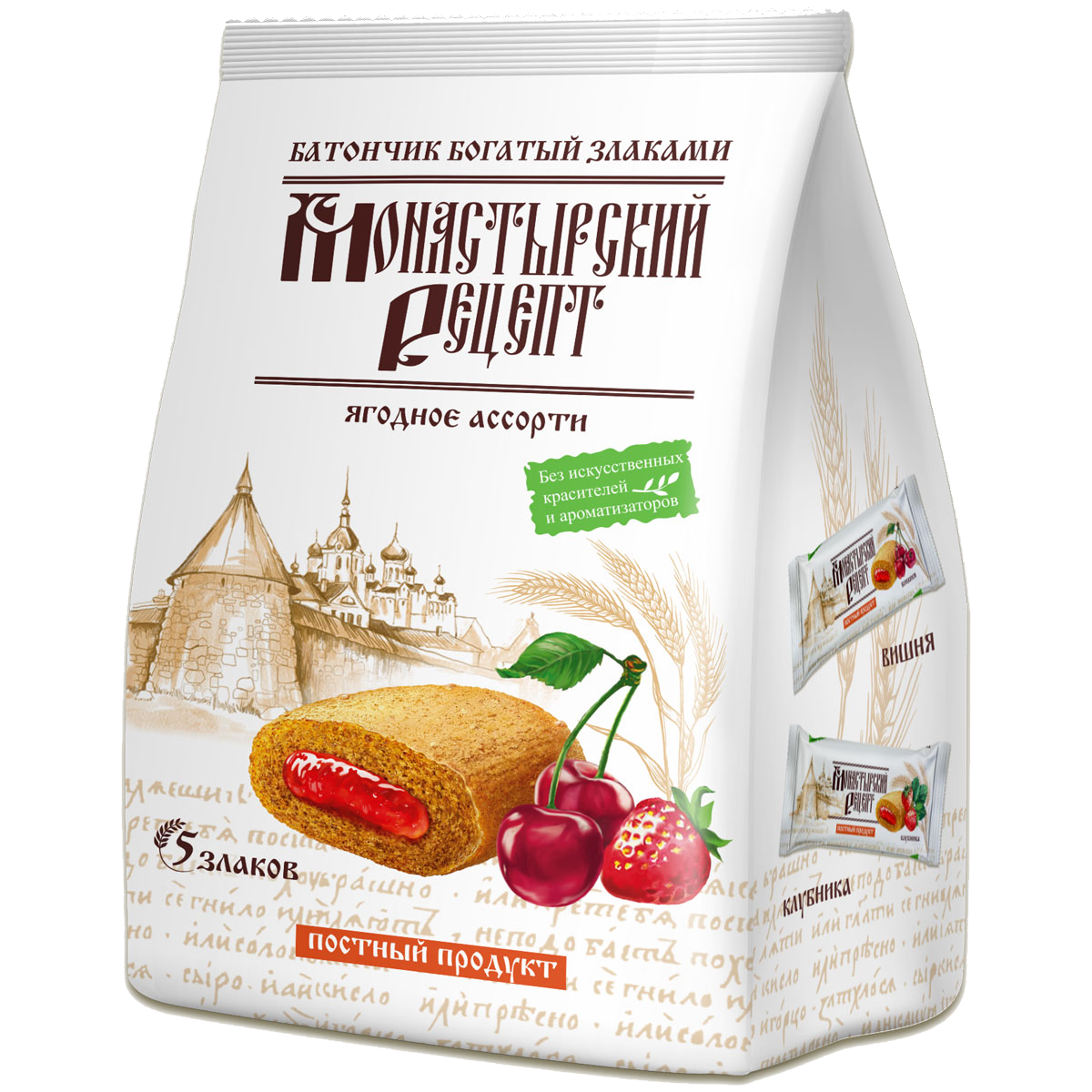 Батончик со злаками «Монастырский рецепт», ягодное ассорти, 300г/18шт.
