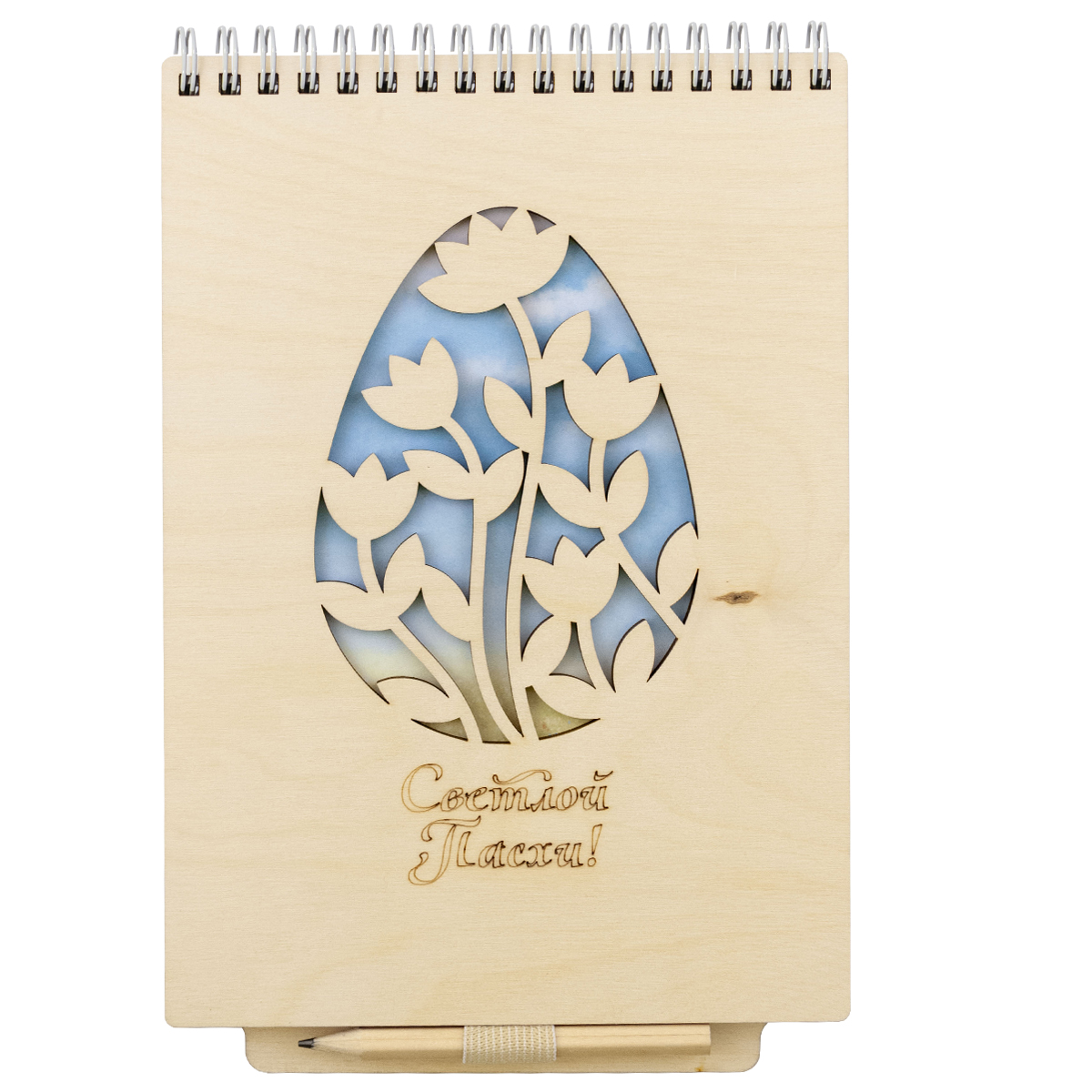 Блокнот деревянный с карандашом "Светлой Пасхи", на пружине, 210х148 мм