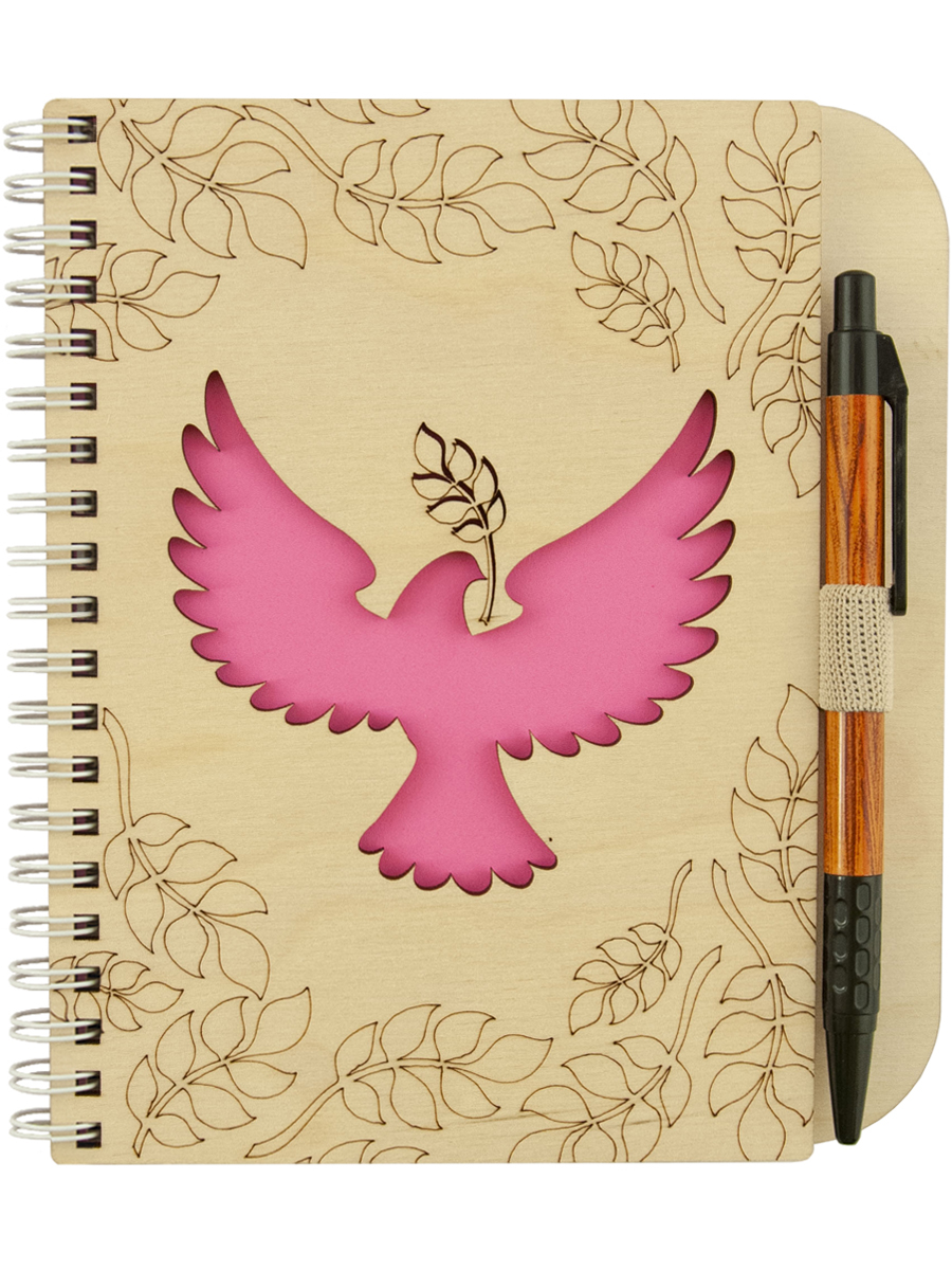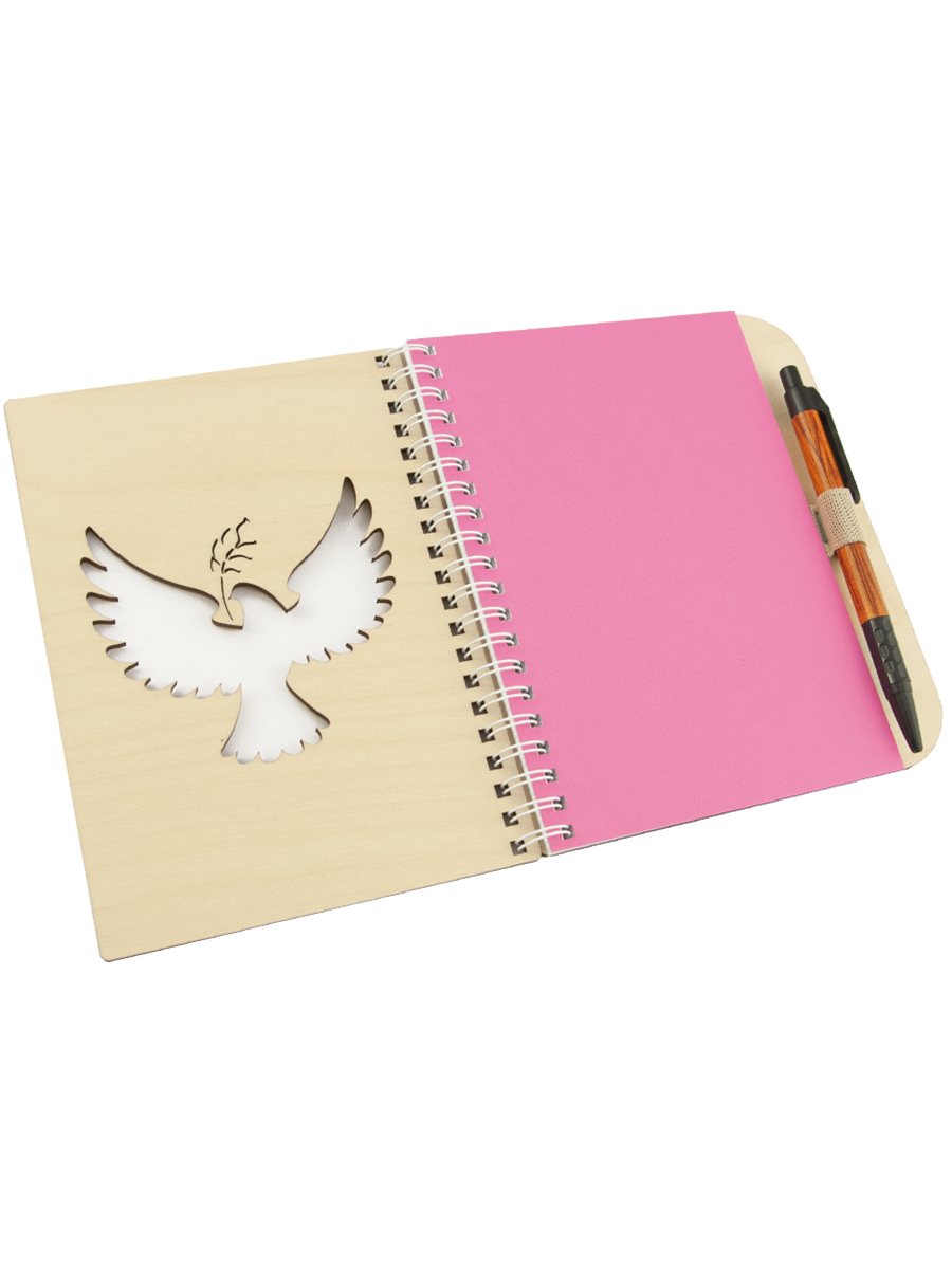 Блокнот деревянный с ручкой "Голубь с веточкой", 170*125 мм.