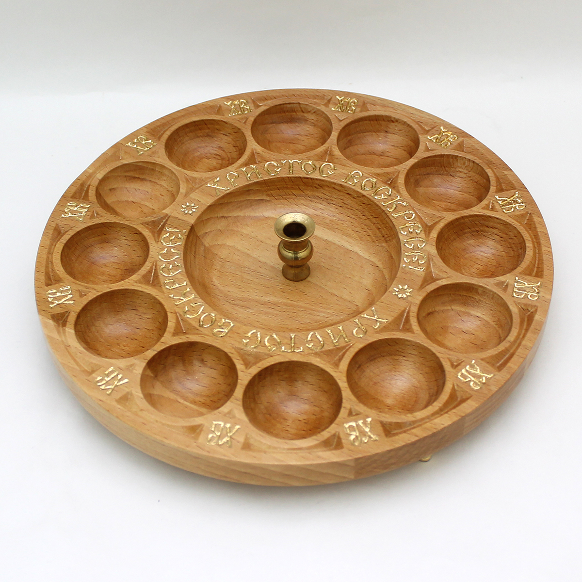 Блюдо пасхальное 236 мм, бук, свечник, поталь