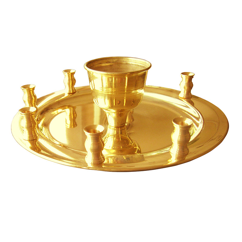 Мастерская церковной утвари «Колокол» предлагает вашему вниманию блюдо для соборования из латуни с параметрами: диаметр 220 мм, высота 85 мм, диаметр подлампадника 60 мм, что дает возможность легко переносить блюдо с места на место. Изделие, выкрашенное в оттенок позолоты, рождает в душе чувство спокойствия и красоты. Приобрести блюдо для Елеосвящения и больше различной церковной утвари вы можете в нашем интернет-магазине. Также советуем вам взглянуть на свечи – они будут значимым дополнением к покупке блюда.
