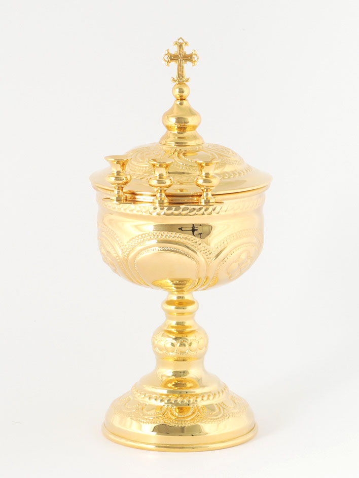 Чаша водосвятная со светильниками чеканка золочение, 0,5л