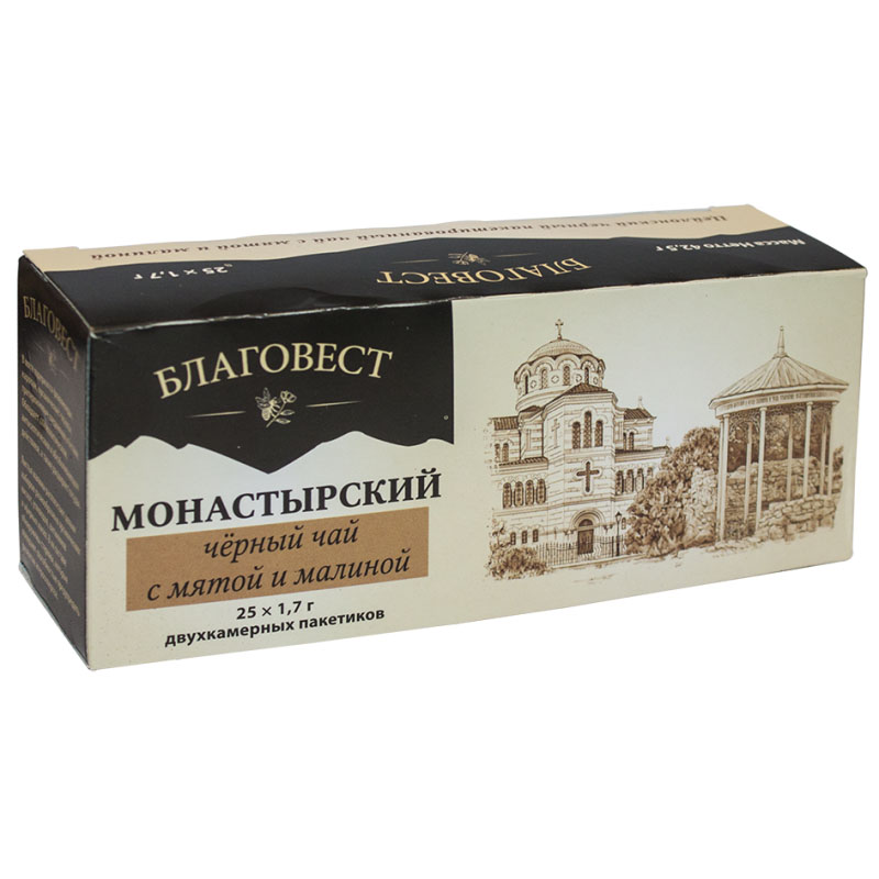 Чай Монастырский черный с мятой и малиной 25 пакх1,7 г