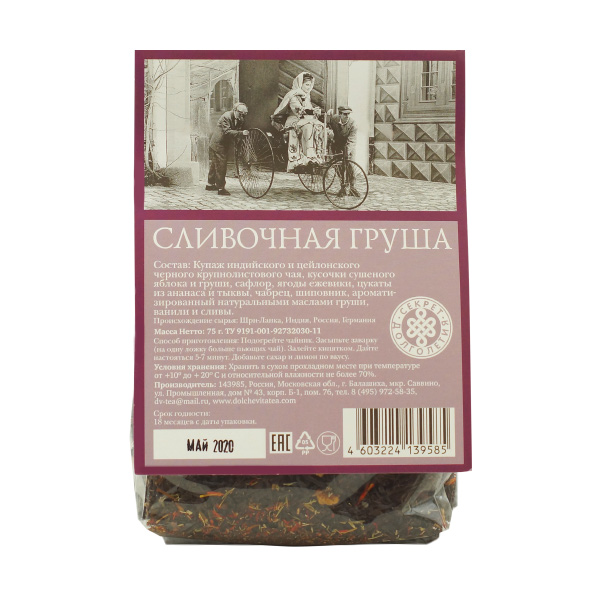 Чай "Секрет долголетия.Сливочная груша" 75 гр. (чай черный с натуральными добавками)