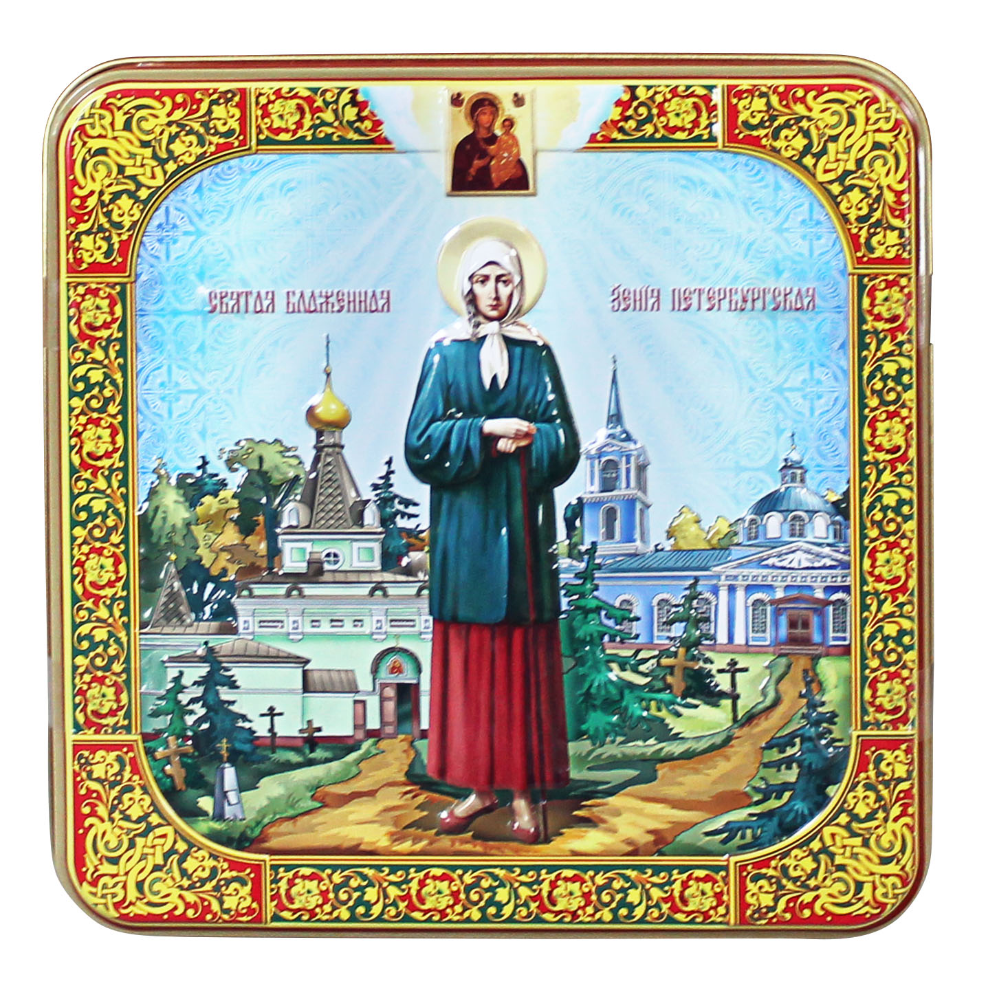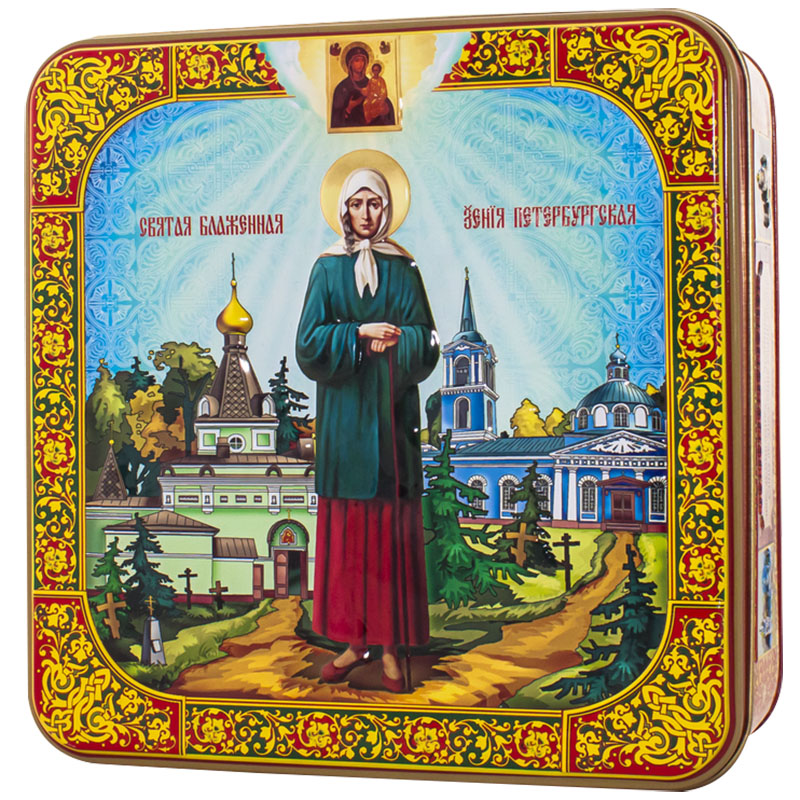 Чайный набор 200 г Св. Ксения (100 г черный крупнолистовой + зеленый чай 100 г) ж/б