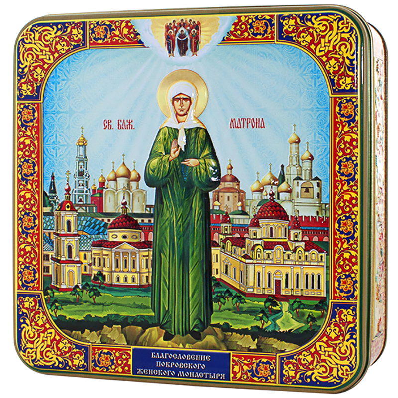 Чайный набор 200 г Св. Матрона (100 г черный крупнолистовой + зеленый чай 100 г) ж/б