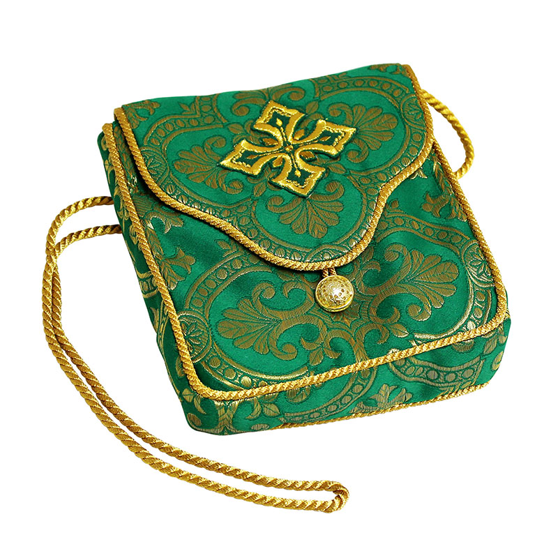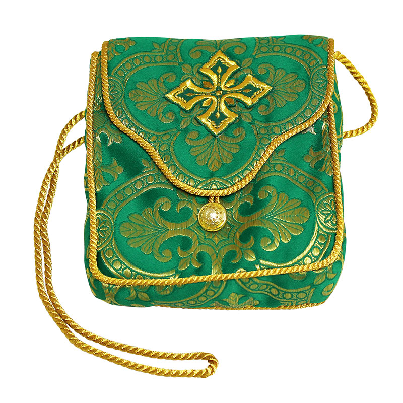 Дароносица парча, подкладка вискоза, зеленая (Колокол)
