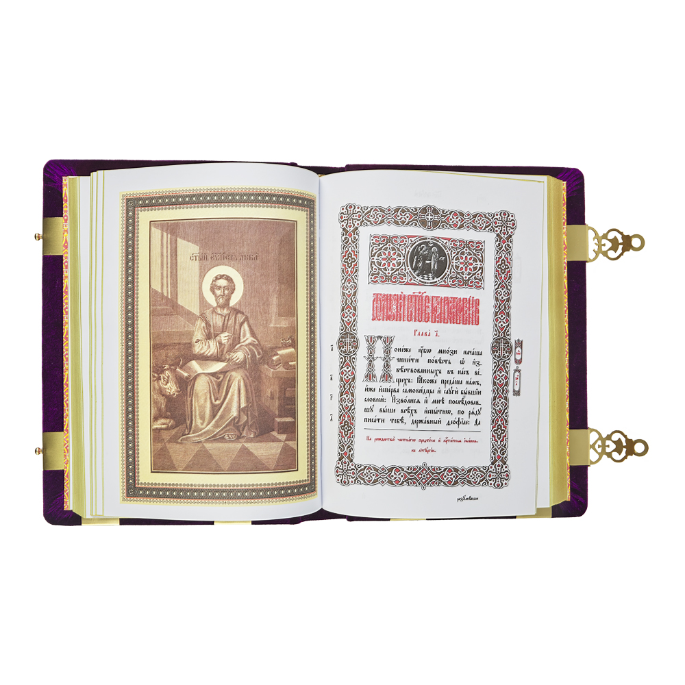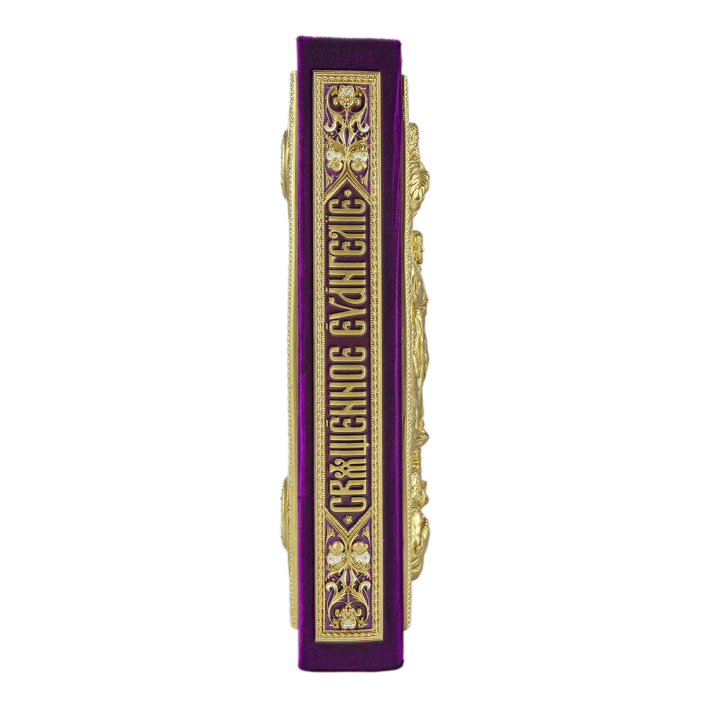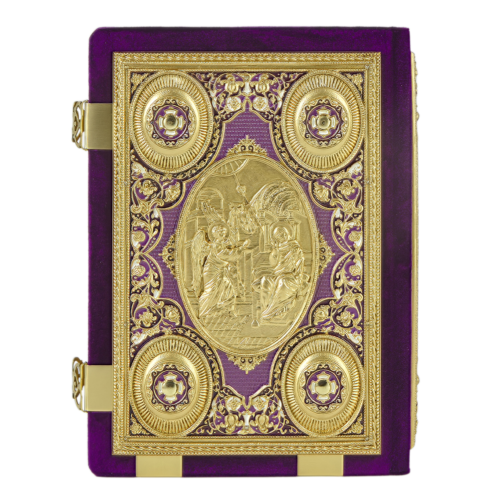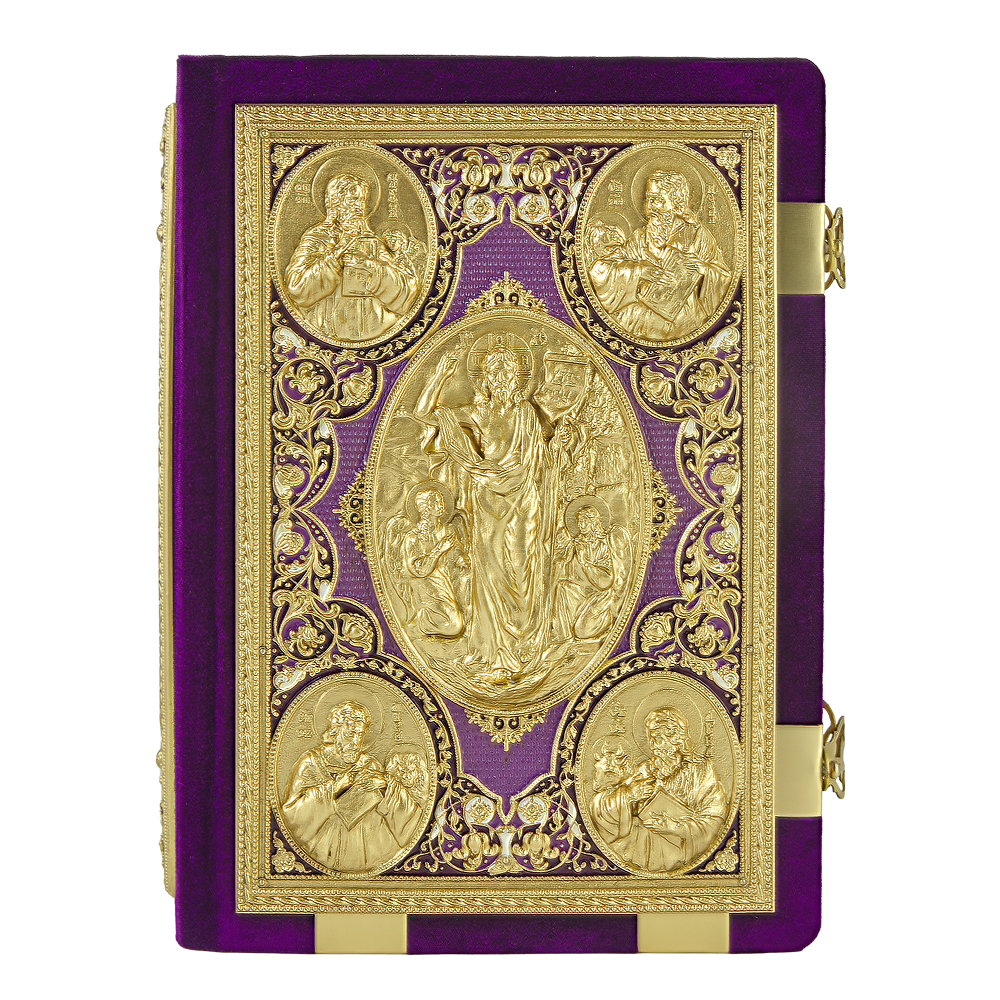 Евангелие напрестольное в бархате, оклад "под золото", эмаль, (315мм*245мм), цвет - фиолетовый