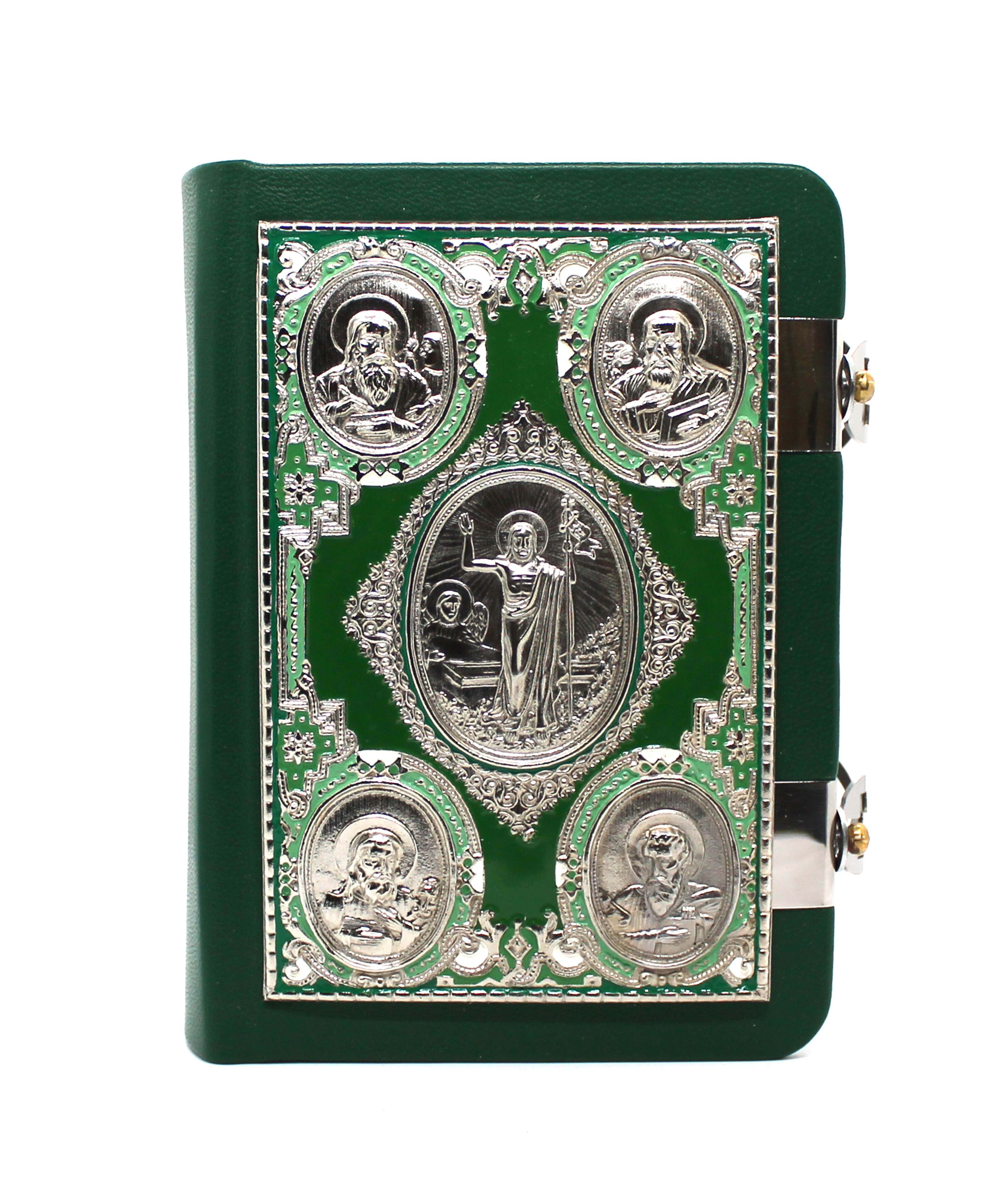 Евангелие требное малое, кожа с окладом, 12*16 см, цвет-зеленый