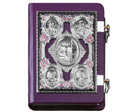 Евангелие требное среднее, кожа с металлическим окладом, (170мм*220мм), цвет-фиолетовый