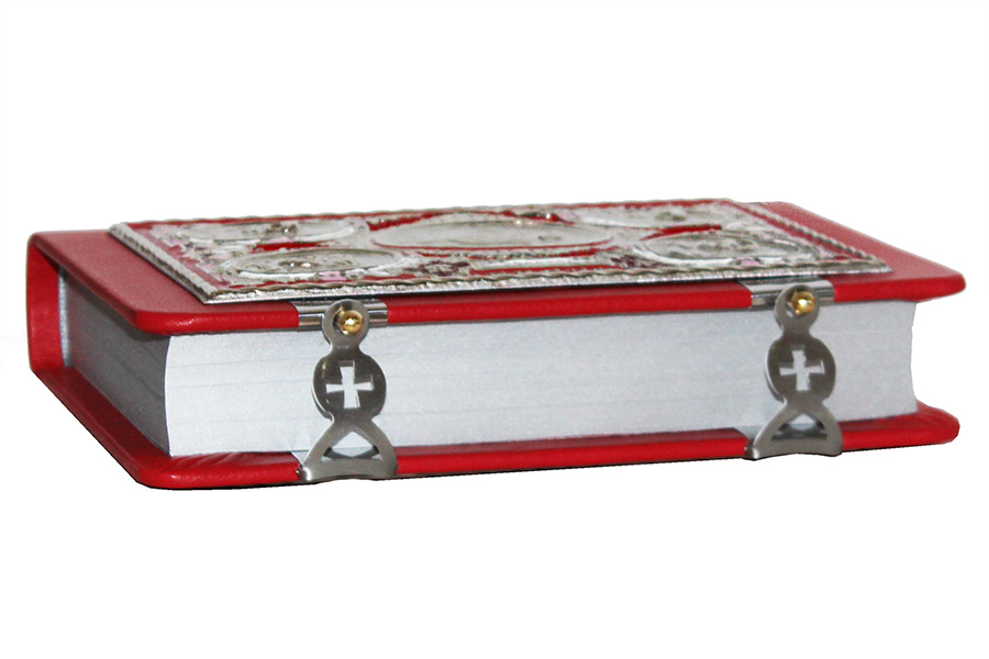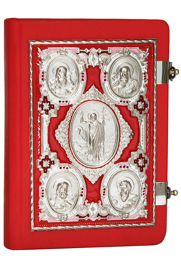 Евангелие требное среднее, кожа с металлическим окладом, (170мм*220мм), цвет-красный