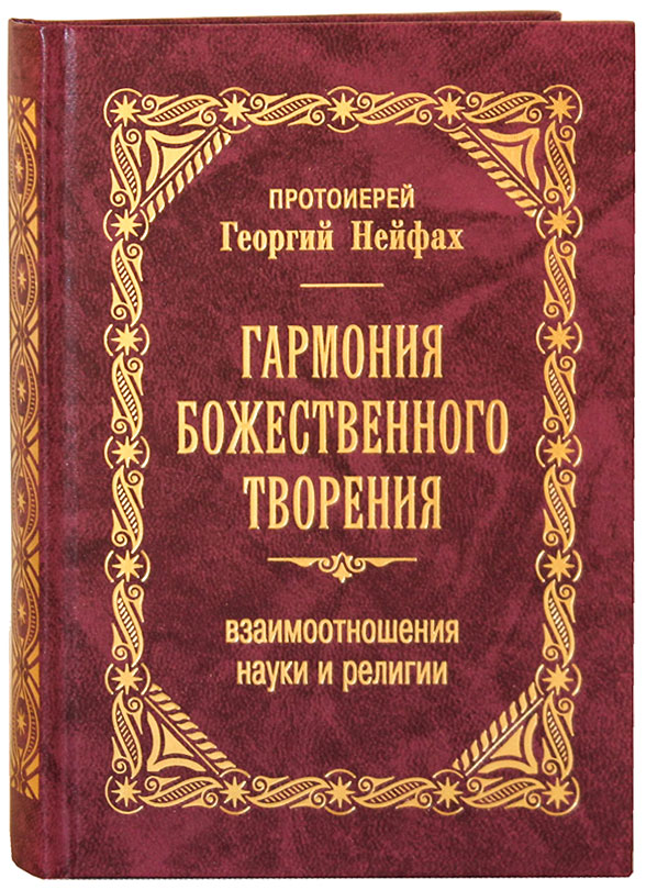 Книга «Гармония Божественного творения» — результат многолетних размышлений отца Георгия Нейфаха (1952–2005). Он был настоятелем Успенского храма города Курчатова, шесть последних лет жизни возглавлял Курчатовское благочиние Курской епархии. Основой книги стал цикл лекций, прочитанных им в Курском госуниверситете. Будучи в прошлом успешным ученым-биологом, а затем став православным священником, он собрал интереснейший материал, освещающий историю взаимоотношений науки и религии от библейских времен до наших дней, и показал связь научных открытий с Божием Откровением.