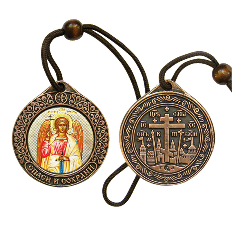 Икона а/м круглая литье (Ангел Хранитель) (шнур) (медь)