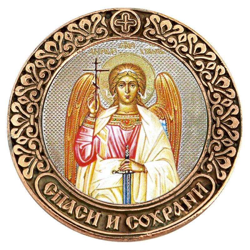 Икона а/м круглая литье (Ангел Хранитель) (скотч) (медь)