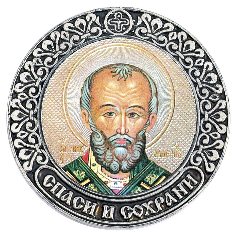 Икона а/м круглая литье (Свт.Николай) (скотч) олово