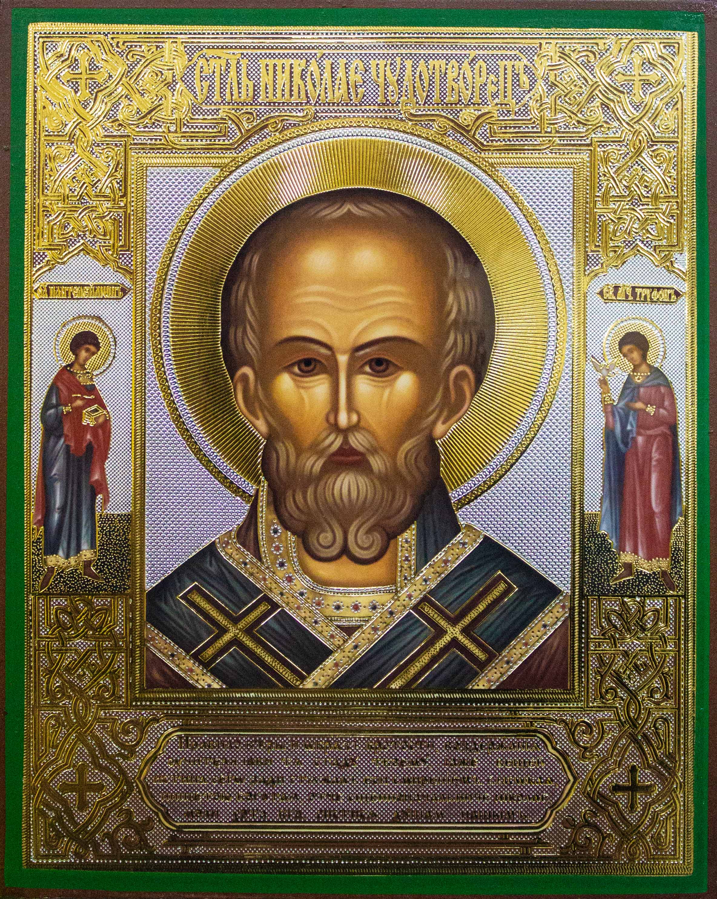 Икона аналойная малая Свт. Николай Чудотворец (с предстоящими) АМ210 (127*158)