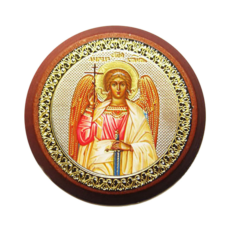 Икона Ангел Хранитель а/м дер. круглая скотч