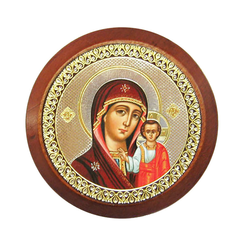 Икона Б.М. Казанская оплечная а/м дер. круглая скотч