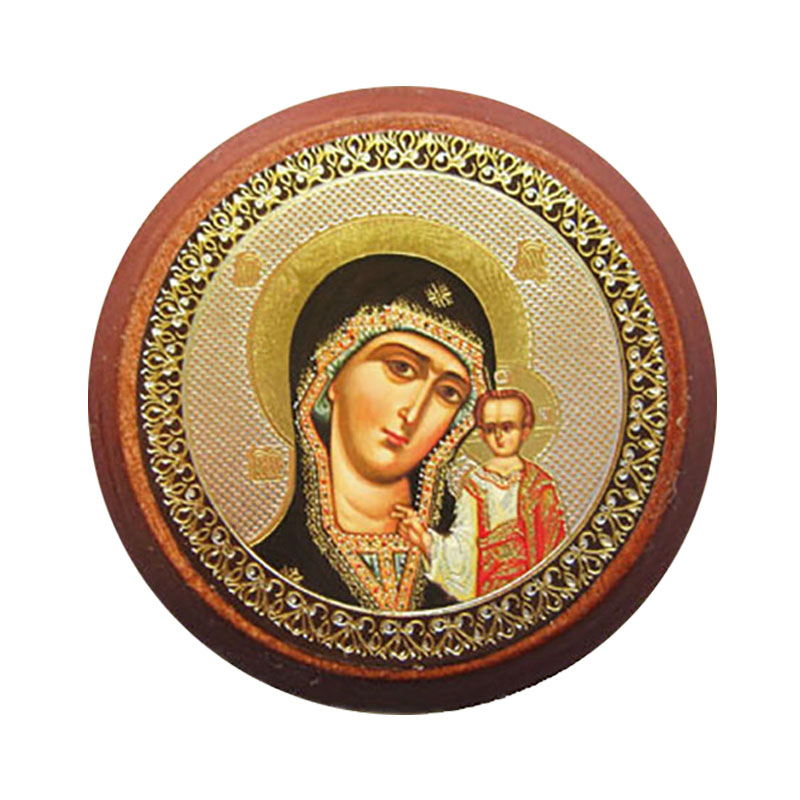 Икона Б.М. Казанская поясная а/м дер. круглая скотч