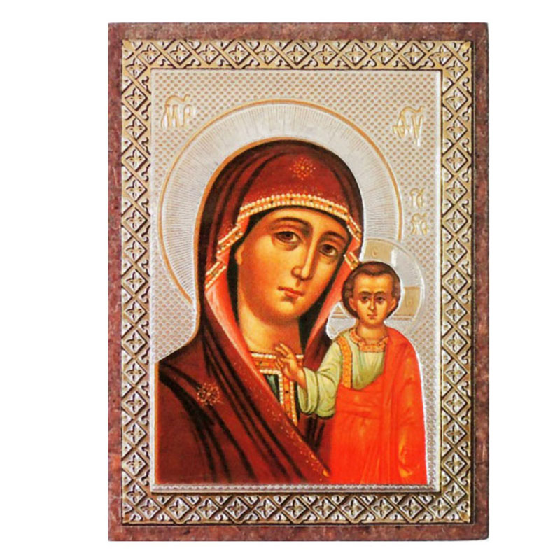Икона Б.М. Казанская с серебряным нимбом малая скотч 40*55 мм