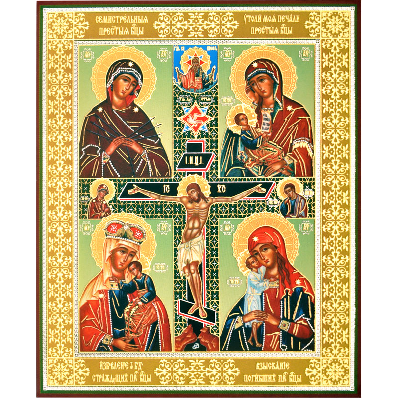 Икона "БМ Четырехчастная с распятием " (98*120*6) мм