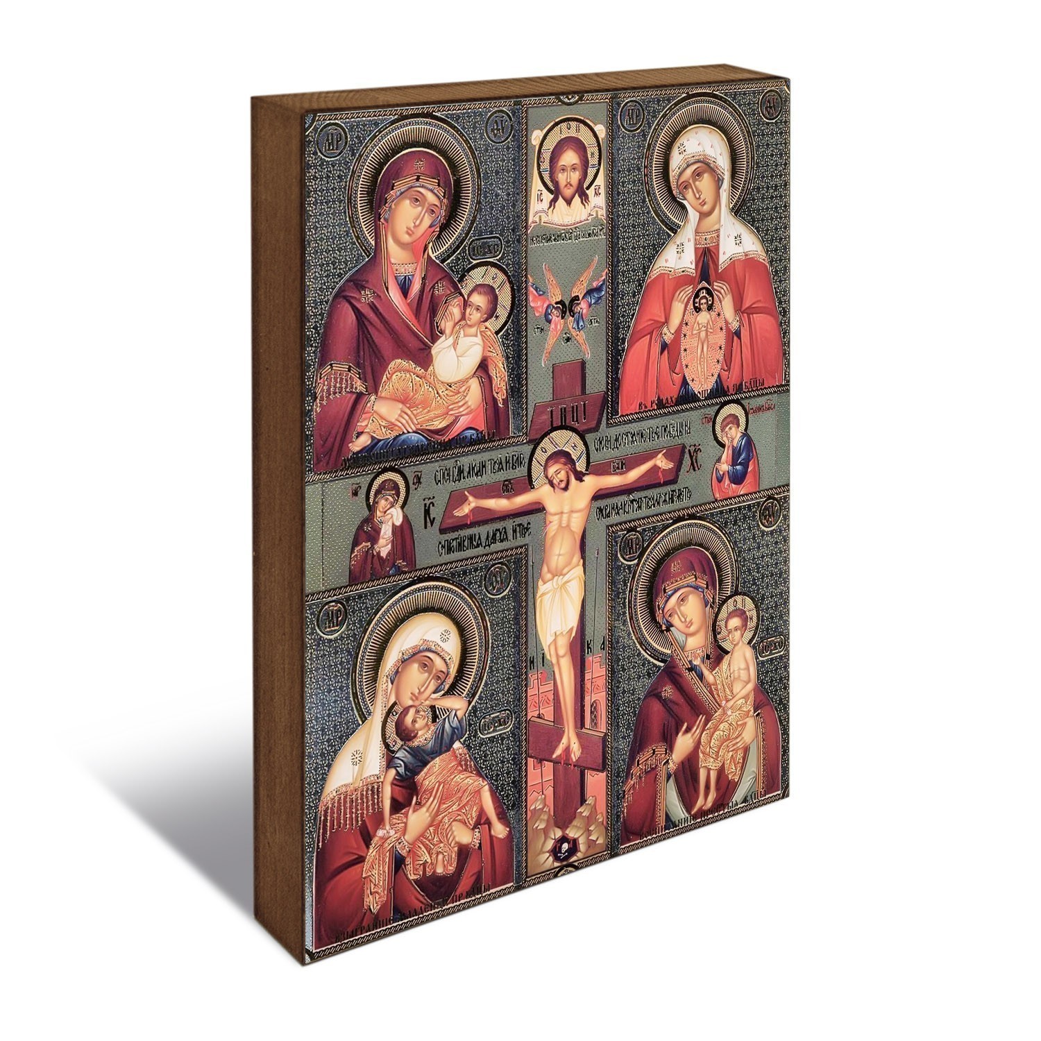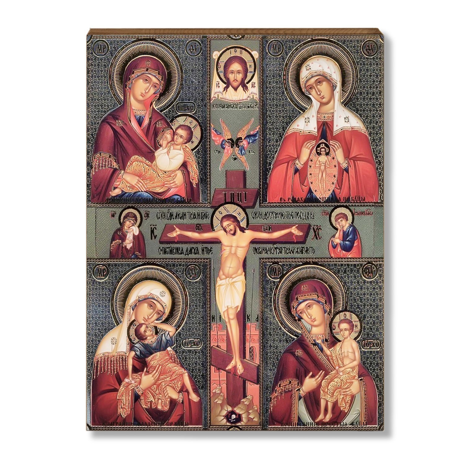 Икона Божией Матери "Четырехчастная: Феодоровская, Иверская, Владимирская, Казанская", дерево, 14х18