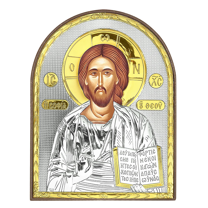 Икона Господь Вседержитель 85*105, деревянная основа, белый металл