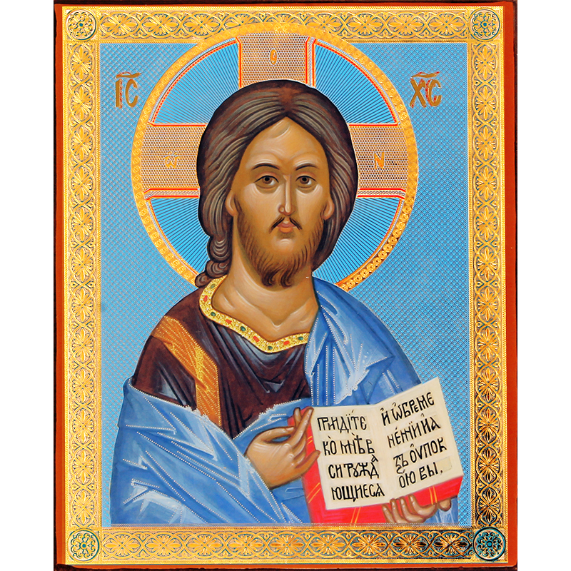 Икона аналойная "Господь Вседержитель", голубой фон (6мм)