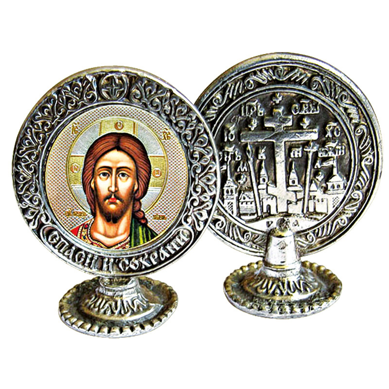 Икона круглая литье на подставке Г.Вседержитель (оплечная), олово