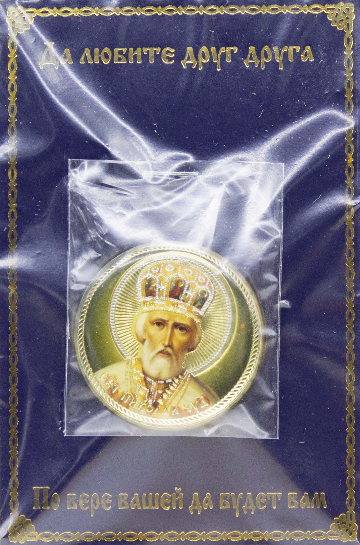 Икона круглая малая (смола) на липучке Николай свт. чудотв. (в митре) (D-31мм) 001