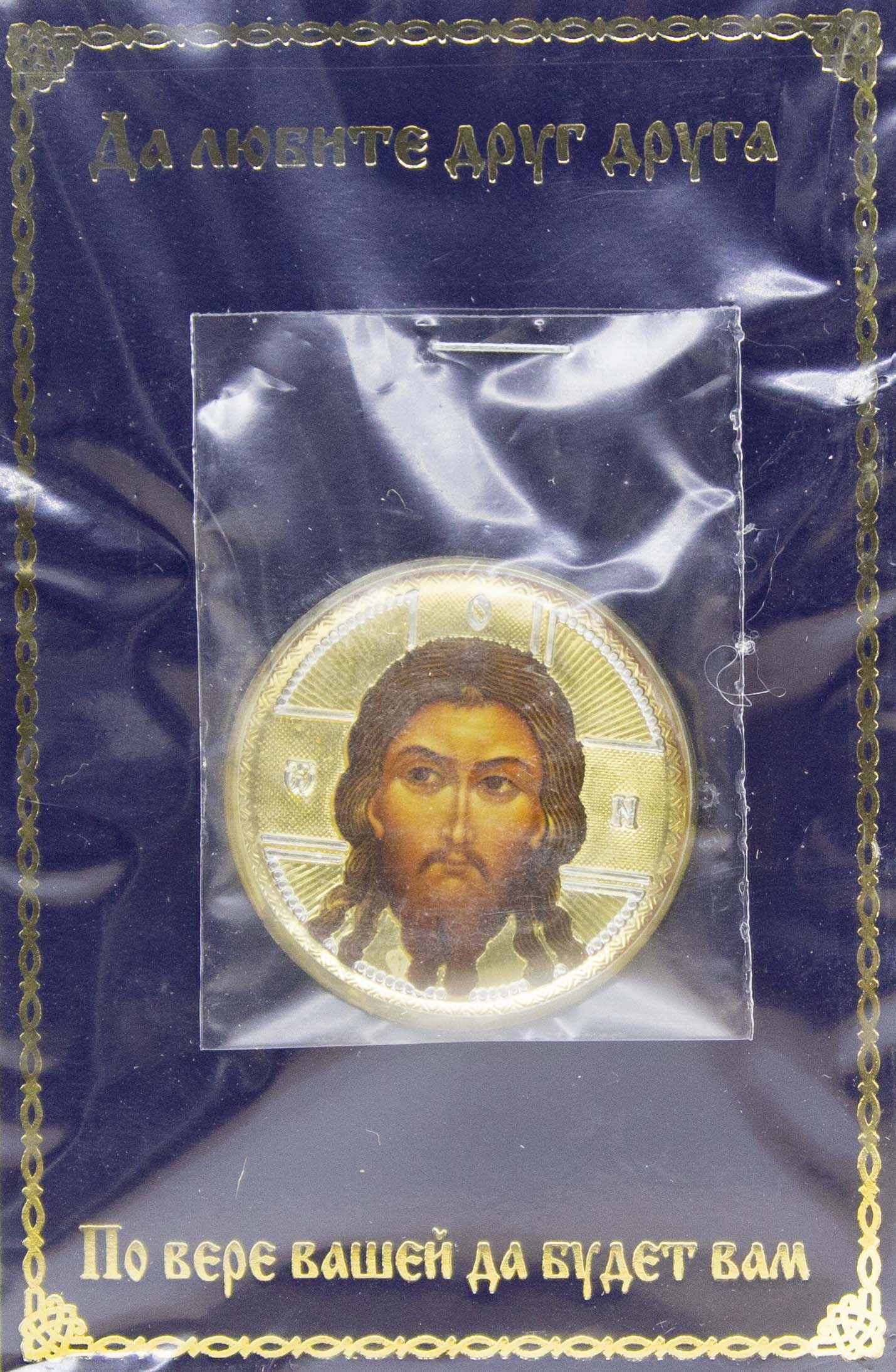 Икона круглая малая (смола) на липучке Спас Нерукотовроный (D-31мм) 006