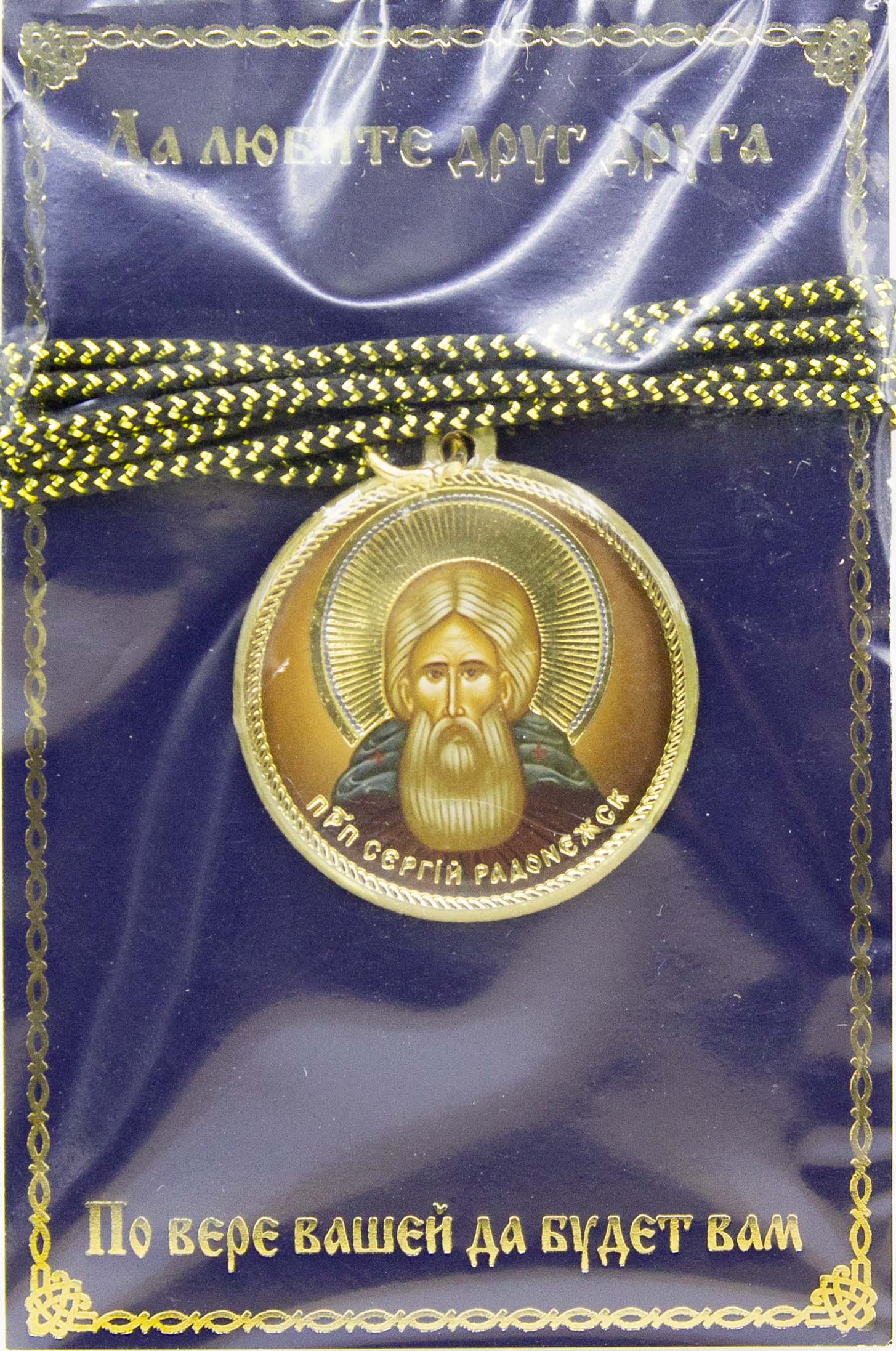 Икона круглая малая (смола) на шнуре Сергий Радонежский св.прп. (D-31мм) 002