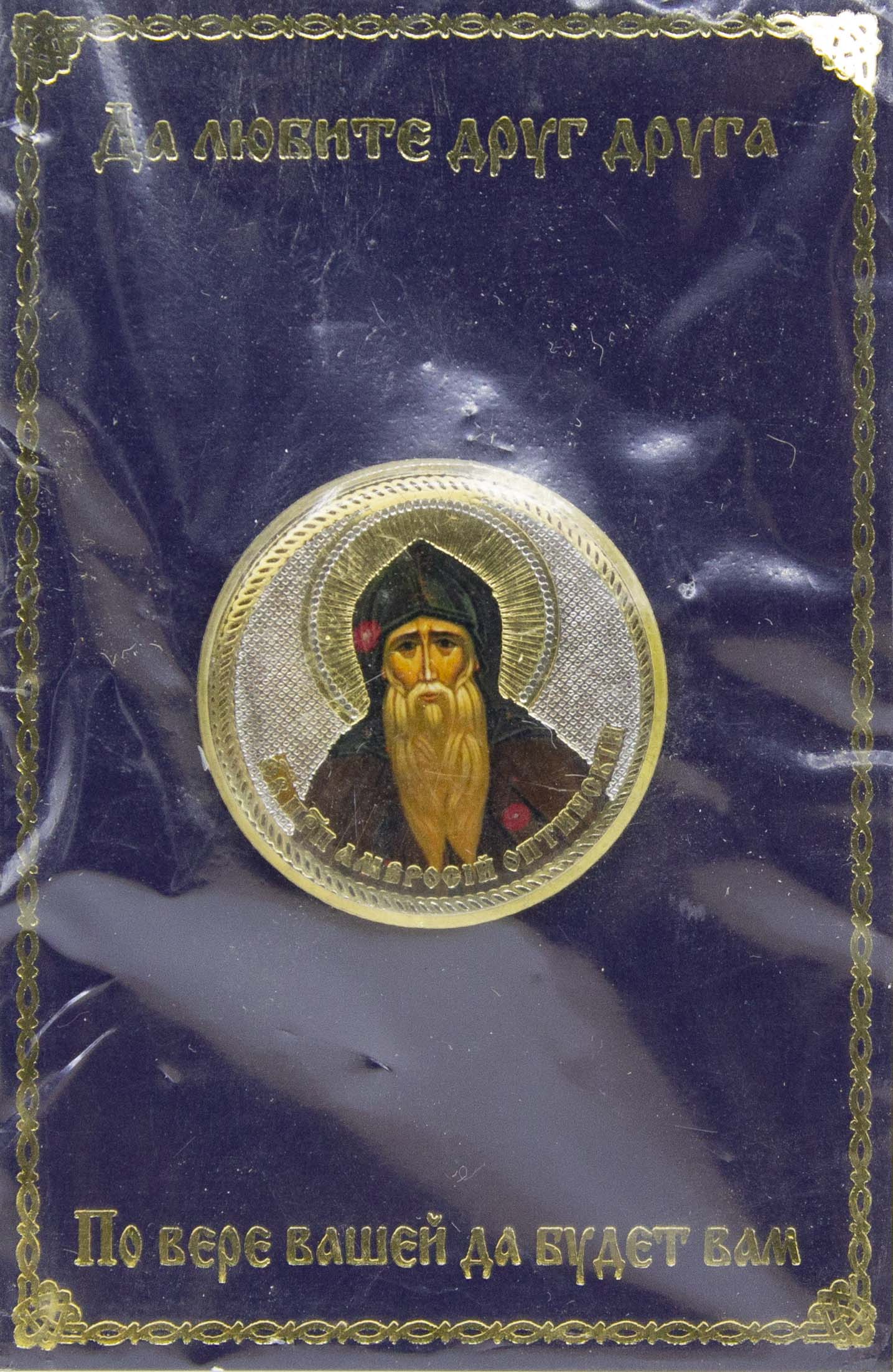 Икона круглая (смола) значок Амвросий Оптинский св. прп. (D-31мм) 016