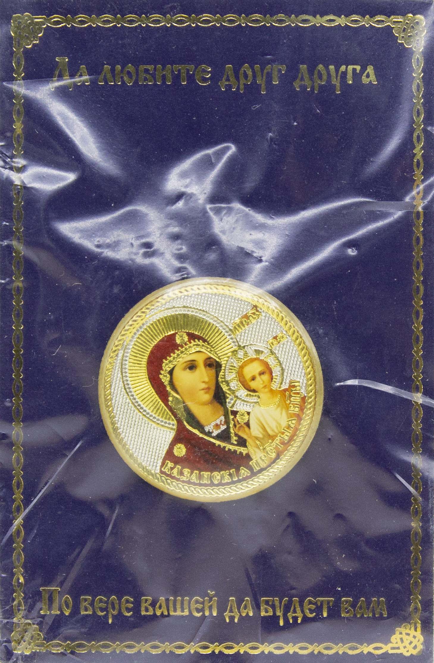 Икона круглая (смола) значок Казанская Б. М. (D-31мм) 017
