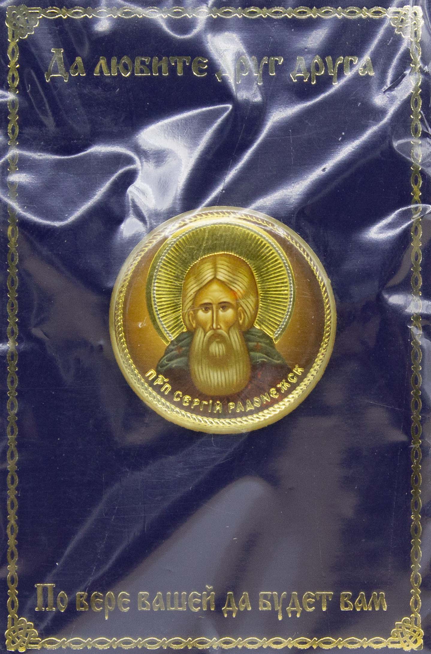 Икона круглая (смола) значок Сергий Радонежский св. прп. (D-31мм) 002