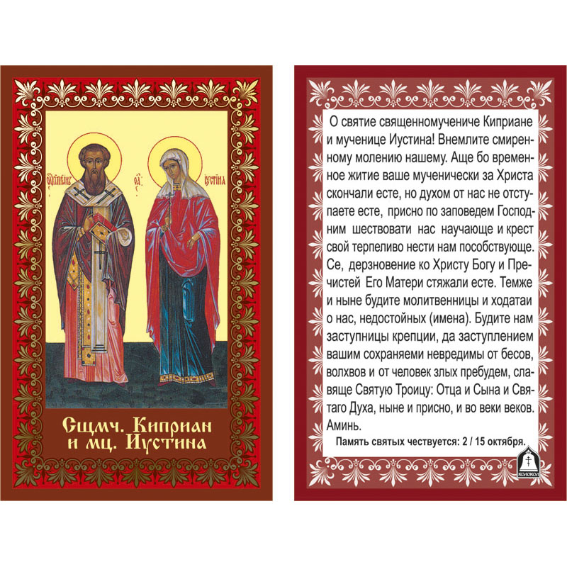 Икона лам.- сщмч. Киприан и мц. Иустина (тиснение)