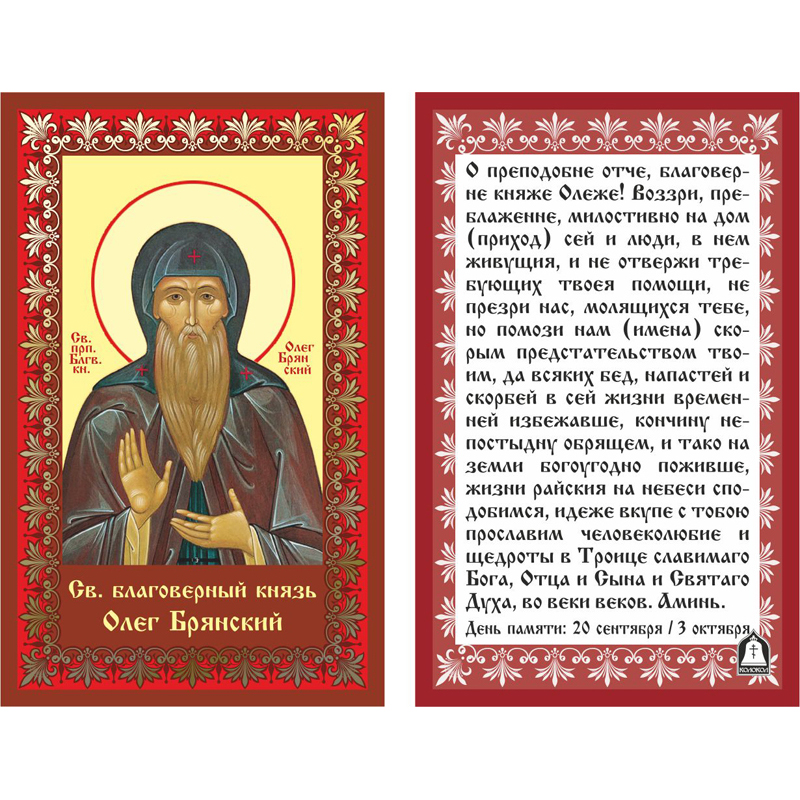 Икона лам.- св.блгв князь Олег Брянский (тиснение)