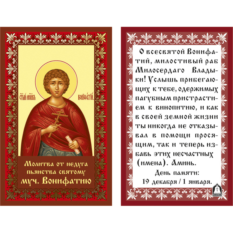 Икона лам.- св.мч. Вонифатий (молитва от пьянства) (тиснение)