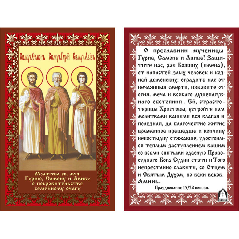 Икона лам.- свв. мчч. Гурий, Самон и Авив (тиснение)