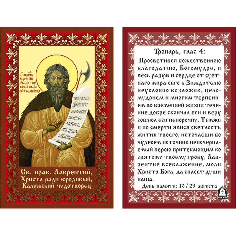 Икона лам.- св.прав. Лаврентий, Калужский Чудотворец. (тиснение)