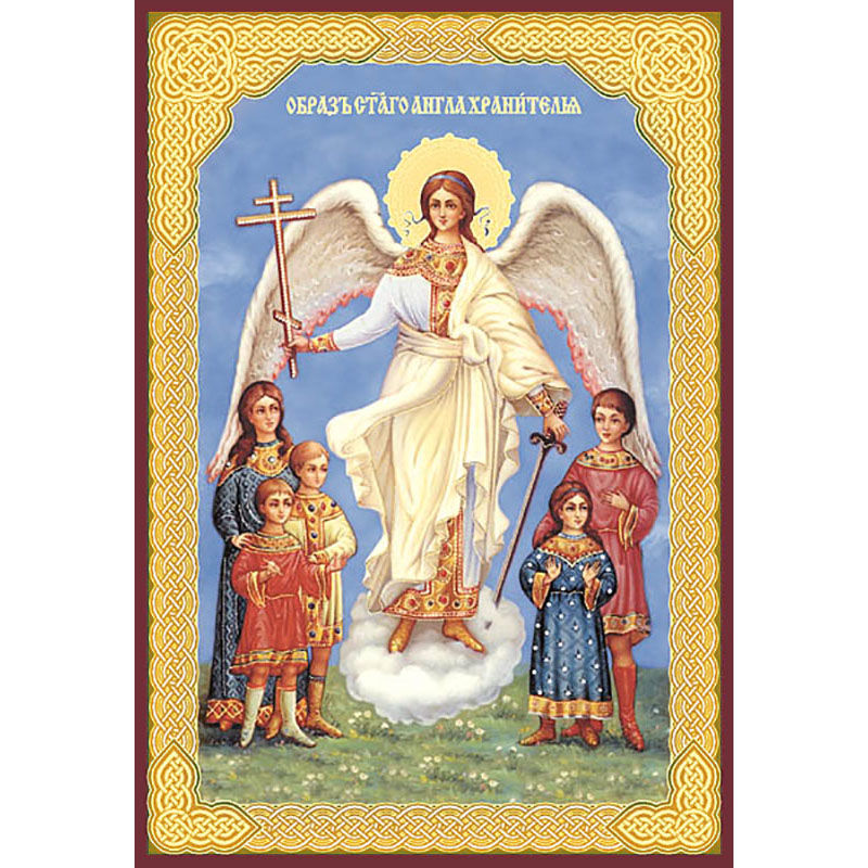 Икона на дереве "Ангел-хранитель с детьми" (60*90) мм