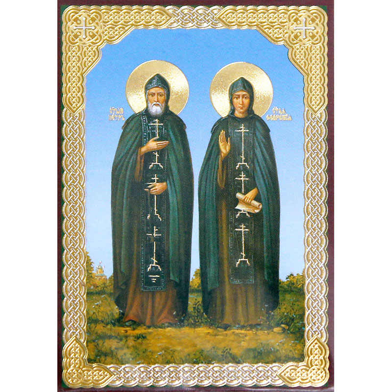 Икона на дереве "Св. благ. Петр и Феврония" (60*90) мм