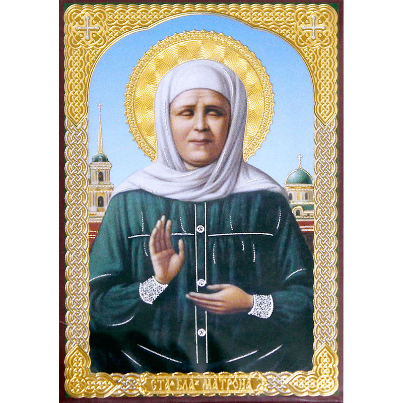 Икона на дереве "Св. Матрона Московская с житием" (60*90) мм