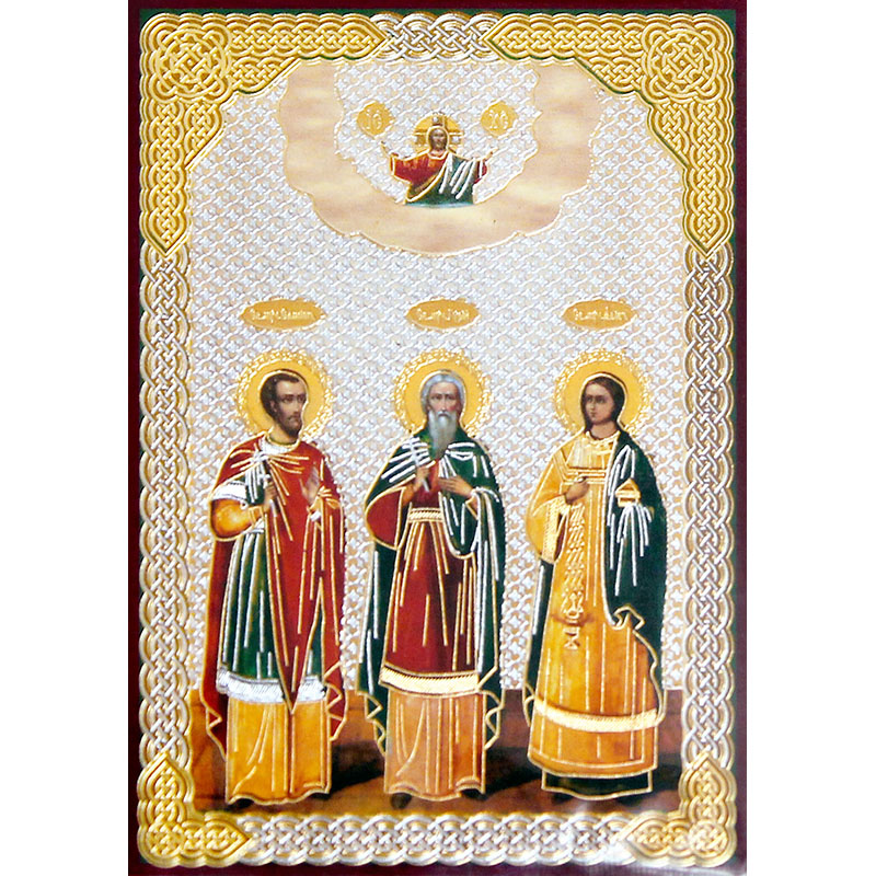 Икона на дереве "Св. муч. Гурий, Самон и Авив" (60*90) мм