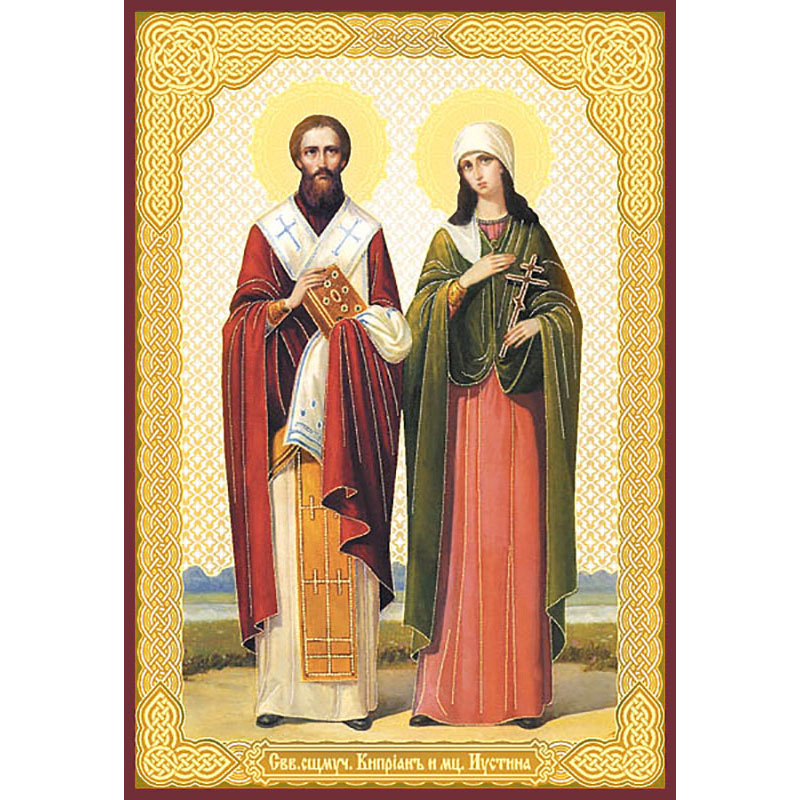 Икона на дереве "Св. муч. Киприан и Устинья" (60*90) мм