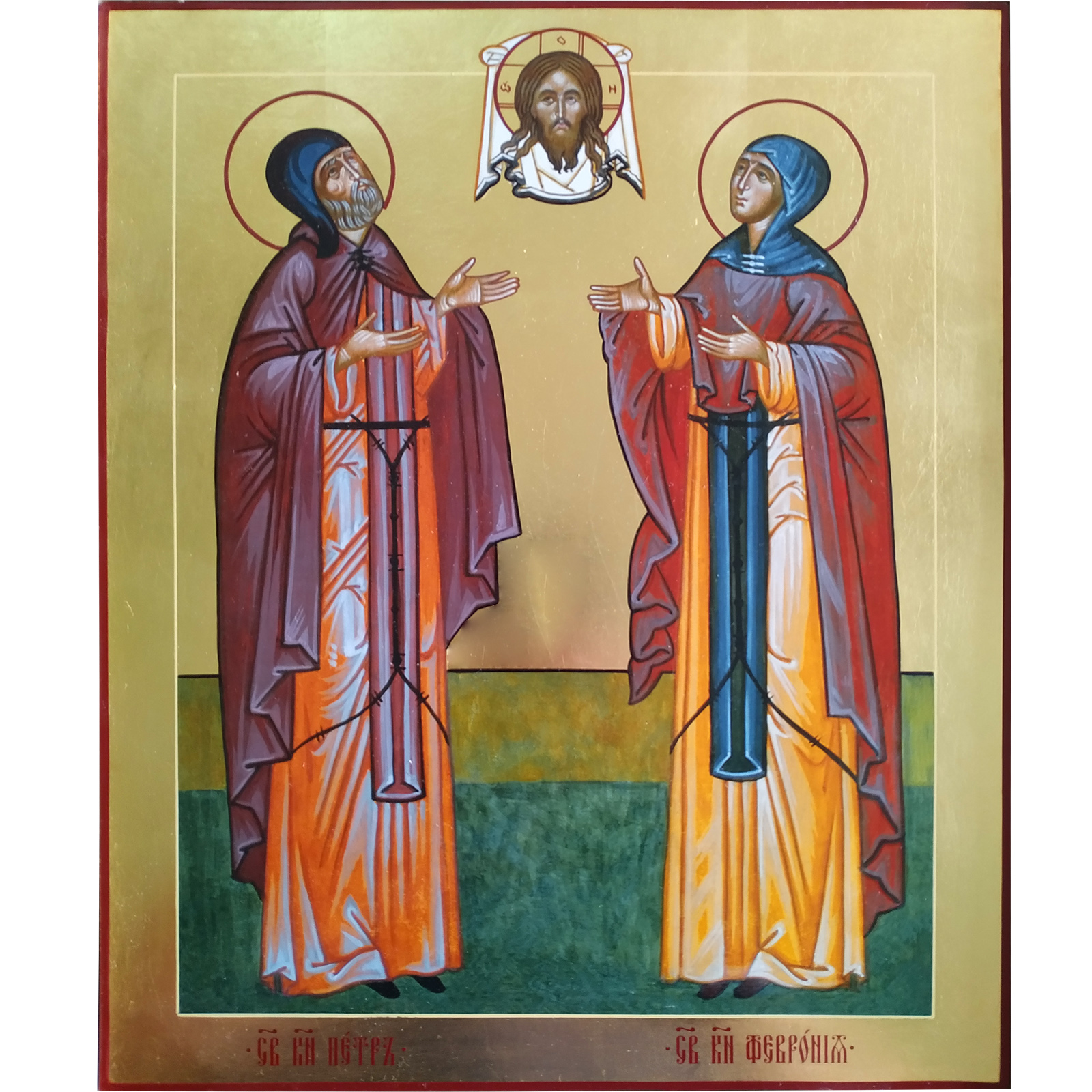 Икона ручной работы "Петр св.кн. и Феврония св.кн" 300*400
