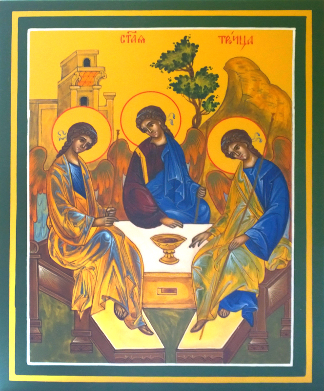 Икона рукописная "Пресвятая Троица" на дереве (205*160)