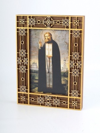 Икона с деревянной резной рамкой "Преподобный Серафим Саровский", МДФ, 13,5х18,5 см