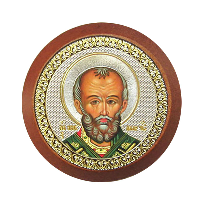 Икона Свт. Николай Чудотворец а/м дер. круглая скотч