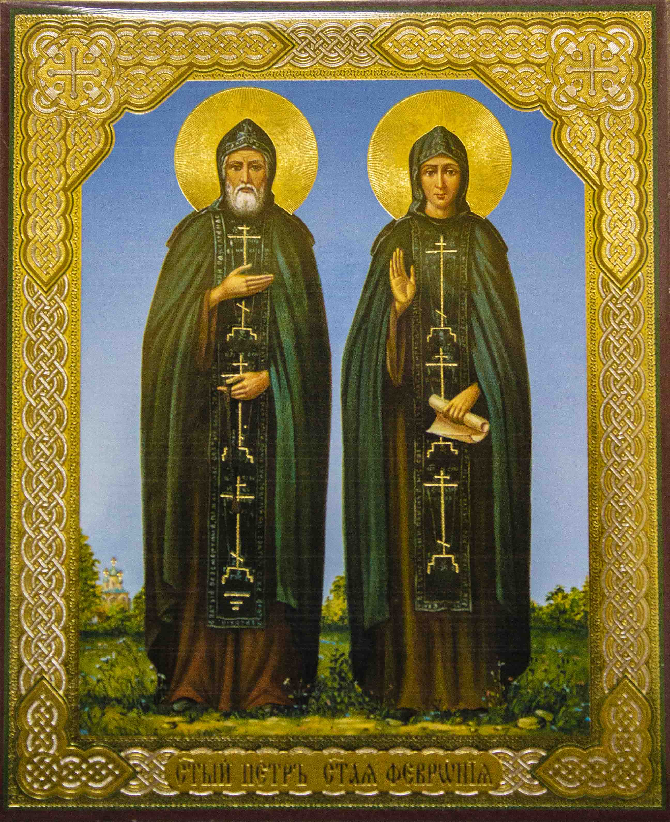 Икона "Свв. блгв. Петр и Феврония" (98*120*6) мм